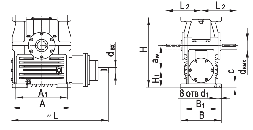 Типоразмер аW D D1 D2 H L* L1max L2* L7 L8 c1 c2 d1 dвх dвых n