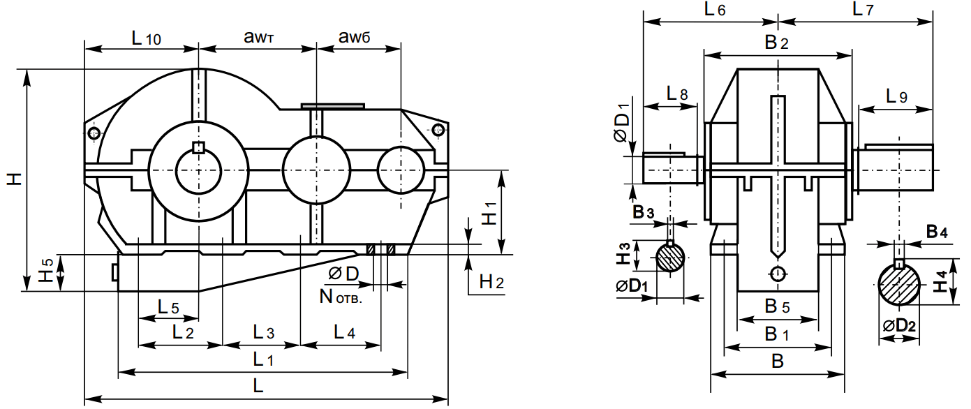 Цилиндрические редукторы Ц2У-315КМ (КМВ), Ц2У-400КМ (КМВ)