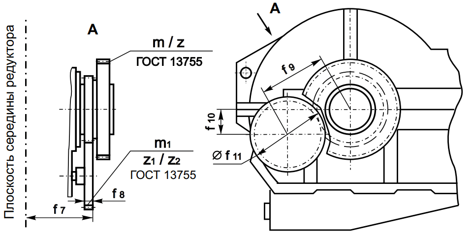 Размеры конца тихоходного вала в виде зубчатой полумуфты с паразитной шестерней